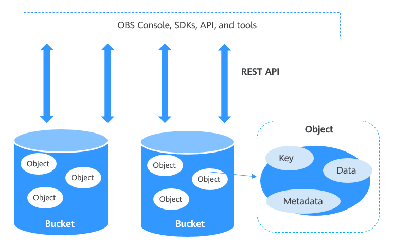 El Servicio de almacenamiento de objetos (OBS) es un servicio escalable que proporciona almacenamiento en la nube seguro, confiable y rentable para grandes cantidades de datos.